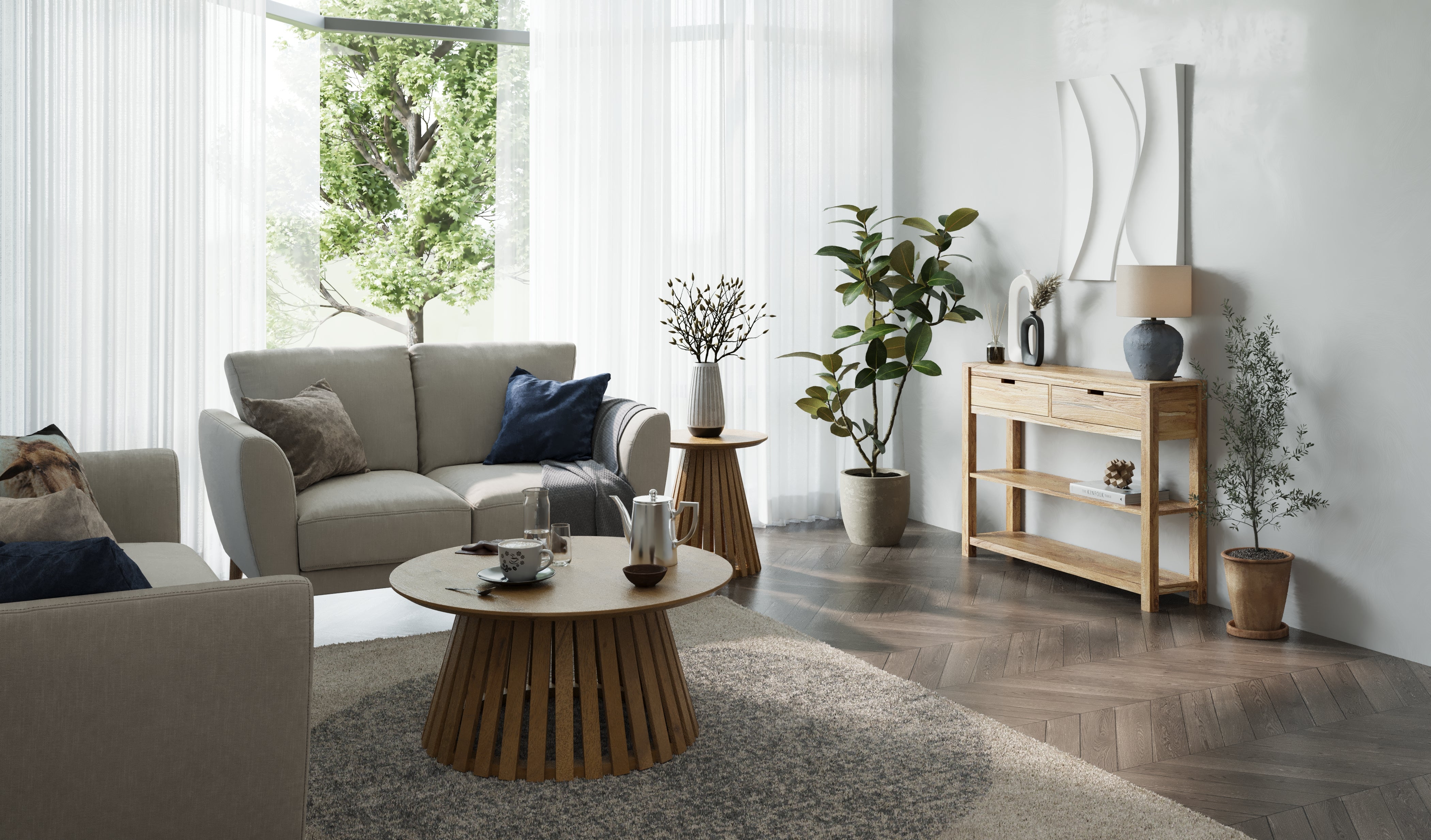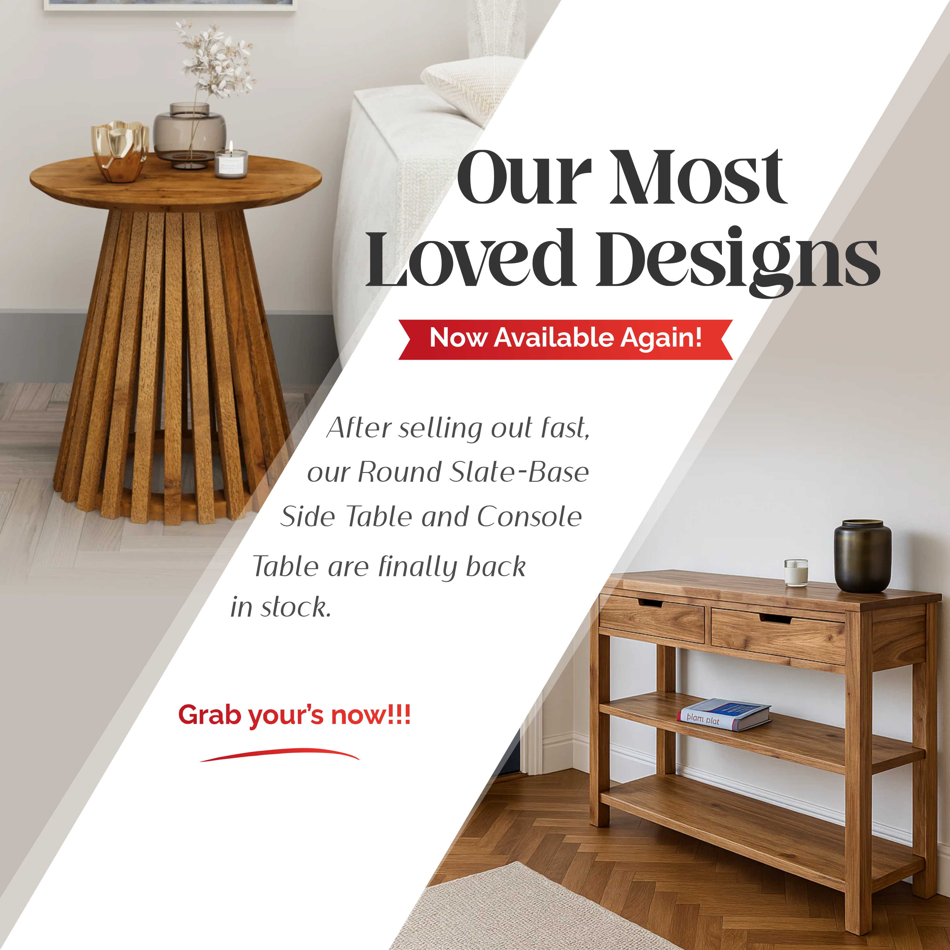 We are very pleased with the circular mango wood table we bought. It looks great in our minimalist scandi style room & came beautifully packaged & was super easy to put together, only needing to add the legs.