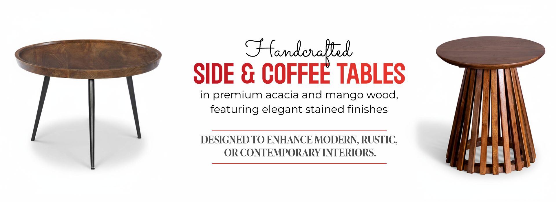 The Acacia Wood Four Log Coffee Table combines natural wood beauty with sturdy metal hairpin legs, offering a perfect blend of rustic and modern design.