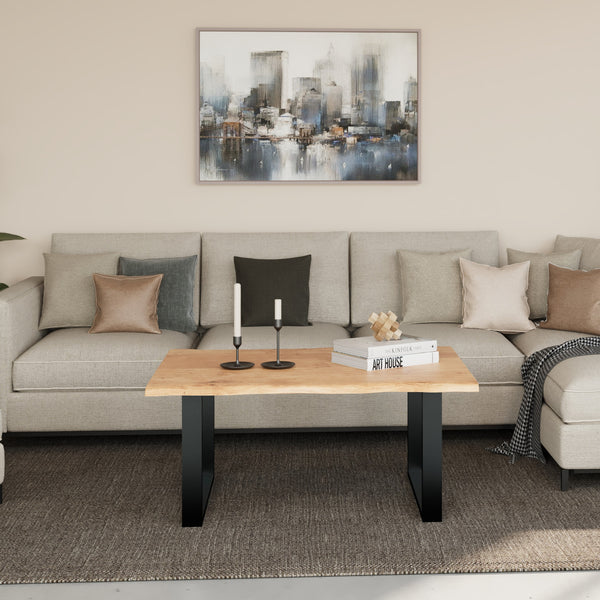 The Live Edge Acacia Wood Table is a perfect blend of natural beauty and modern industrial design. Crafted from solid acacia wood, its live edge top showcases the raw, organic charm of the wood, highlighting its unique grain patterns and rich textures. The natural finish enhances the wood’s warmth, making it a stunning centerpiece for any living space. Supported by sturdy black powder-coated metal legs, this table offers excellent stability while adding a sleek, contemporary contrast. Ideal for both rustic and modern interiors, it provides ample seating space, making it perfect for family gatherings and stylish experiences.
